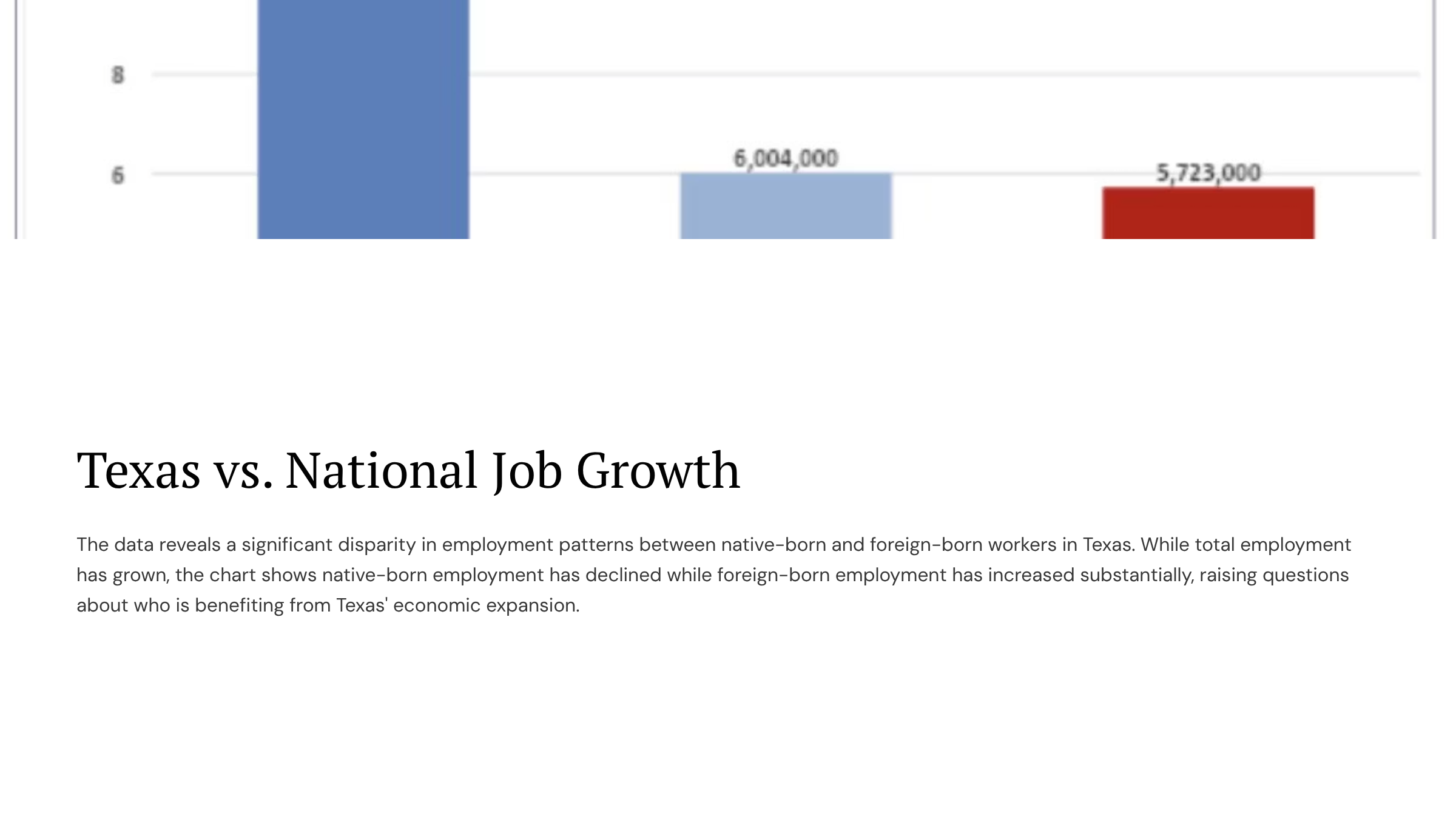 However, Abbott failed to reveal that while Texans make up roughly 80% of the workforce, they are only receiving about 50% of the jobs being reported as “created.”