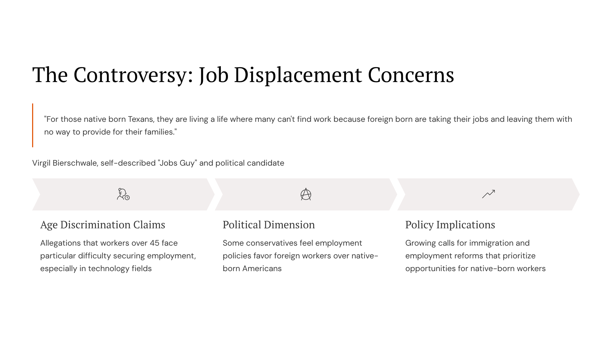 Virgil Bierschwale is a Texas veteran, researcher of labor and visa programs, and founder of Guest Worker Visas. His campaign for the U.S. Senate is grounded in his lifelong mission to defend American workers, restore fairness in the job market, and hold Washington accountable.