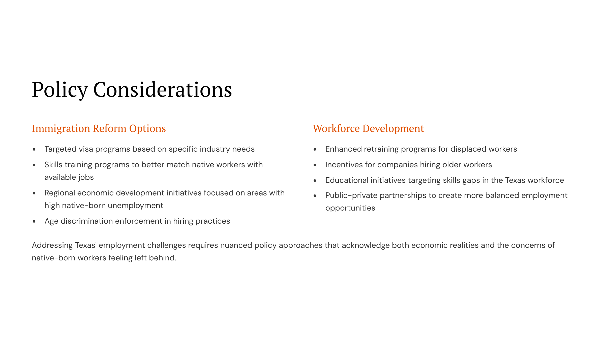Putting Texans First: Ensuring Texans — not foreign visa workers or outside interests — benefit fully from jobs created in their own state.